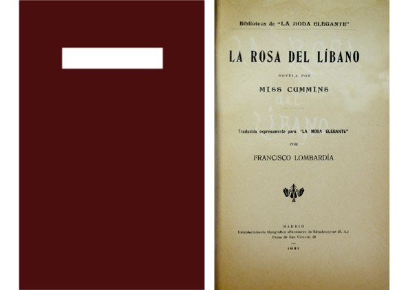 La Rosa del Líbano. Novela. [El Fureidis. Arabic for Paradise. 1860]. Traducida expresamente para "La Moda Elegante" por Francisco Lombardía. | Libri antichi e moderni | Cummins, Miss [Maria Susanna Cummins, 1827-1866].