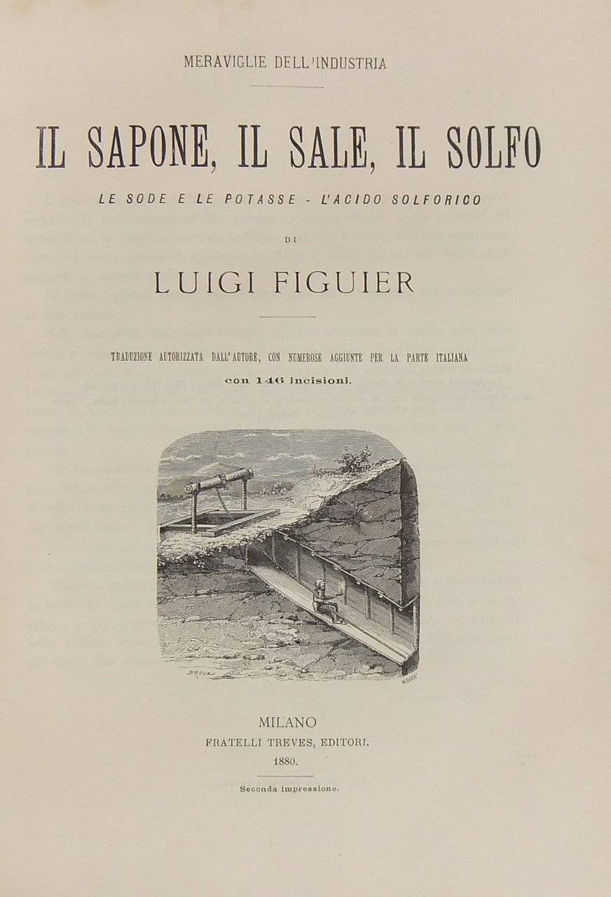La scienza in famiglia o nozioni scientifiche sugli oggetti comuni della vita di Luigi Figuier. Tradotta da Carlo Anfosso con numerose note ed aggiunte. Opera illustrata da 325 incisioni. UNITO A: Il sapone, il sale, il solfo. Le sode e le potasse. L'acido solforico. Traduzione autorizzata dall'Autore con numerose aggiunte per la parte italiana con 146 incisioni