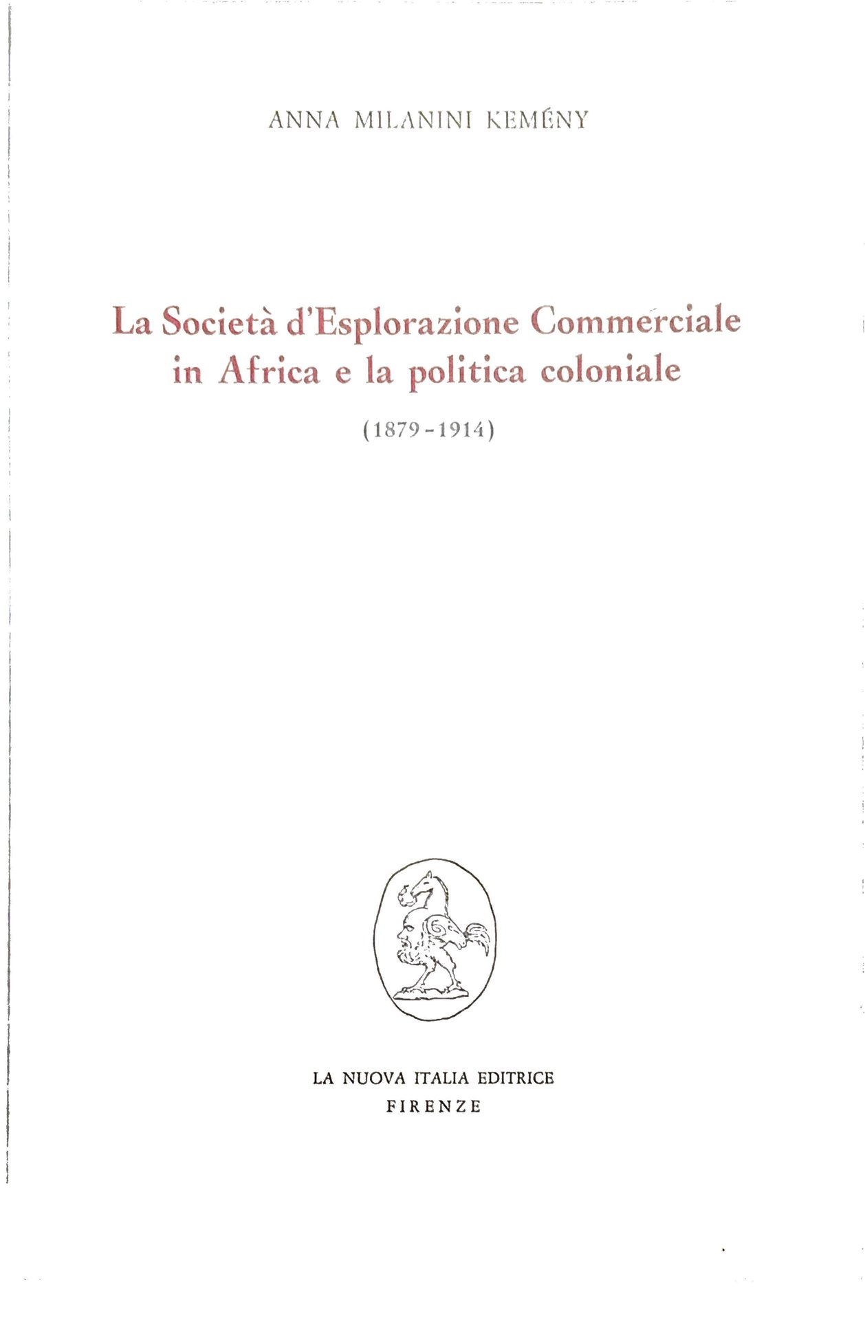 LA SOCIETÀ D'ESPLORAZIONE COMMERCIALE IN AFRICA E LA POLITICA COLONIALE, 1879-1914. | Libri antichi e moderni | MILANINI KEMENY Anna