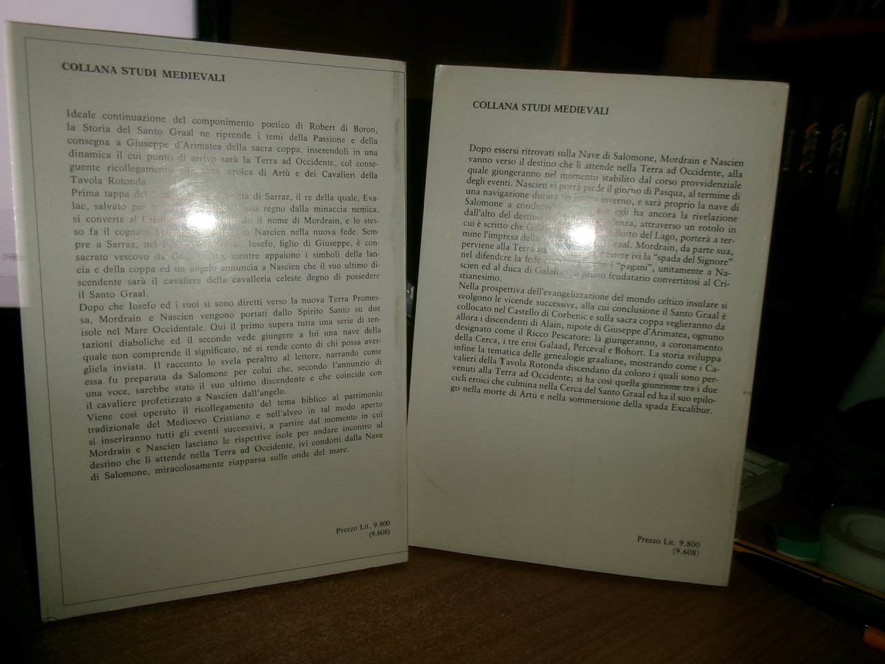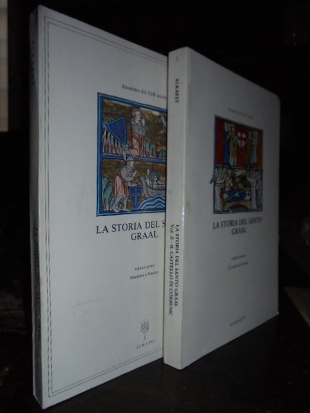 (Religione-Esoterismo) ANONIMO del XIII secolo. Genova, Ed. Alkaest, 1981. La storia del Santo Graal. Vol. I. Mordrain e Nascien. Vol. II. Il Castello di Corbenic. Introduzione di A. Terenzoni. 2 volumi in-8°, cartoncino edit. ill. a col. 182; 184 pp. Temi della Passione e della consegna a Giuseppe d' Arimatea della sacra coppa, il cui punto di arrivo sarà la Terra d' Occidente con la conseguente saga eroica di Artù e dei Cavalieri della Tavola Rotonda. Come nuovi. Neg. mob. nero W in basso in busta trasp.