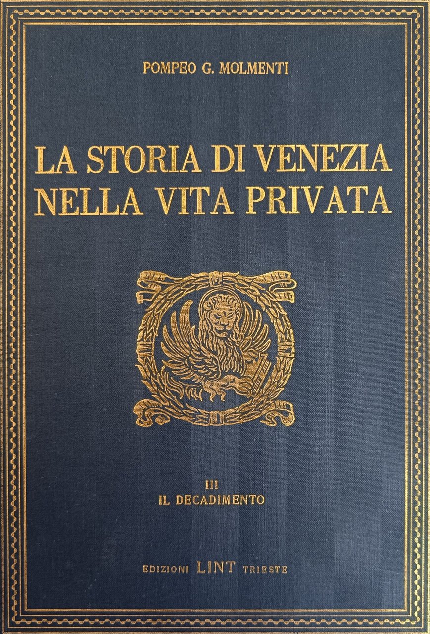 LA STORIA DI VENEZIA NELLA VITA PRIVATA. DALLE ORIGINI ALLA CADURA DELLA REPUBBLICA | Libri antichi e moderni | MOLMENTI POMPEO G., ,MOLMENTI POMPEO G.