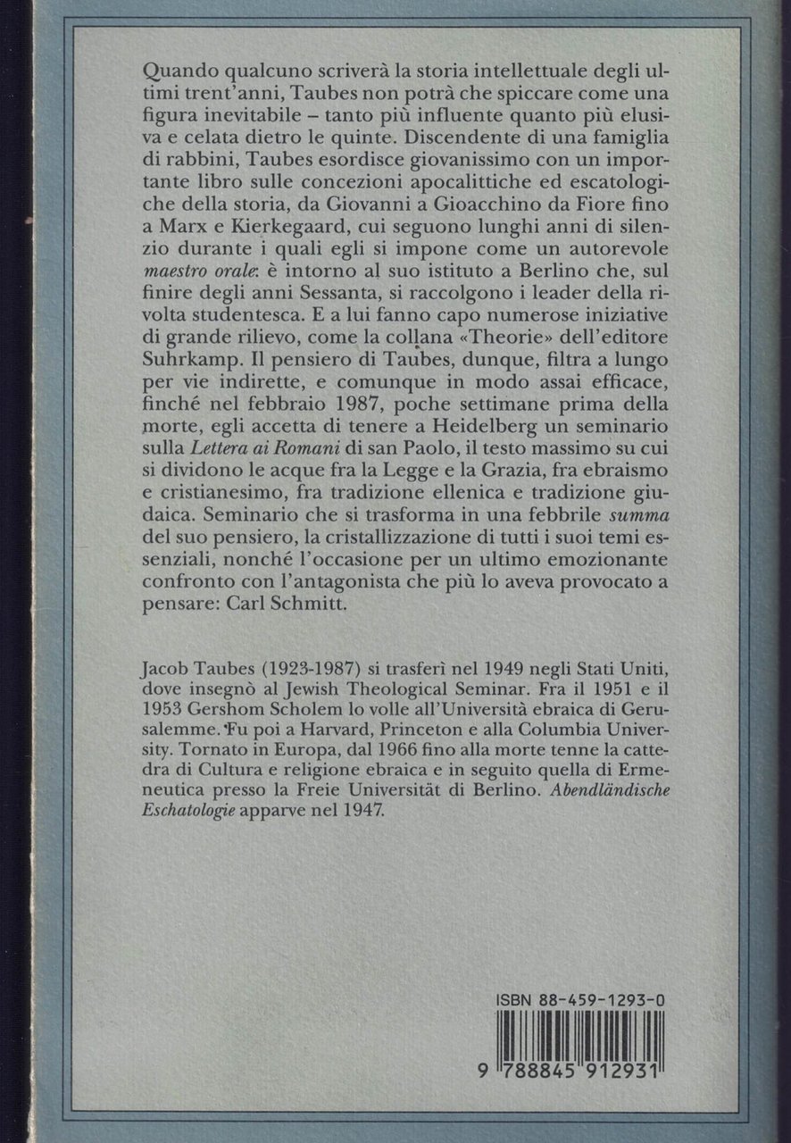La teologia politica di san Paolo. Lezioni tenute dal 23 al 27 febbraio 1987 alla Forschungsstätte della Evangelische Studiengemeinschaft di Heidelberg | Libri antichi e moderni | Taubes, Jacob, ,Taubes, Jacob