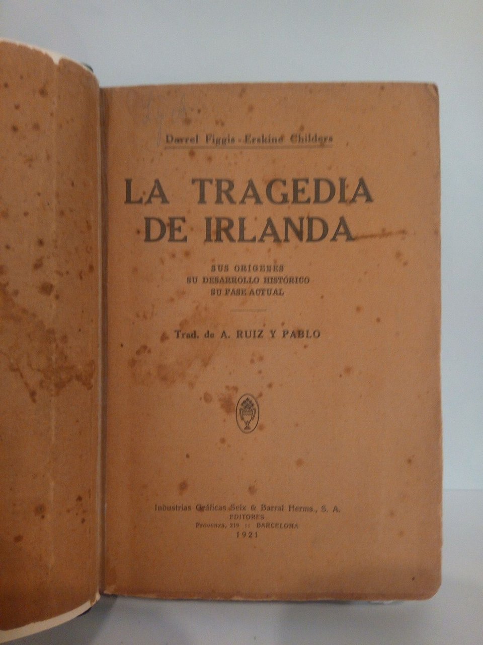 La tragedia de Irlanda: sus orígenes, su desarrollo histórico, su fase actual / Traducción de A. Ruiz y Pablo | Libri antichi e moderni | Figgis, Darrel Y Erskine Childers