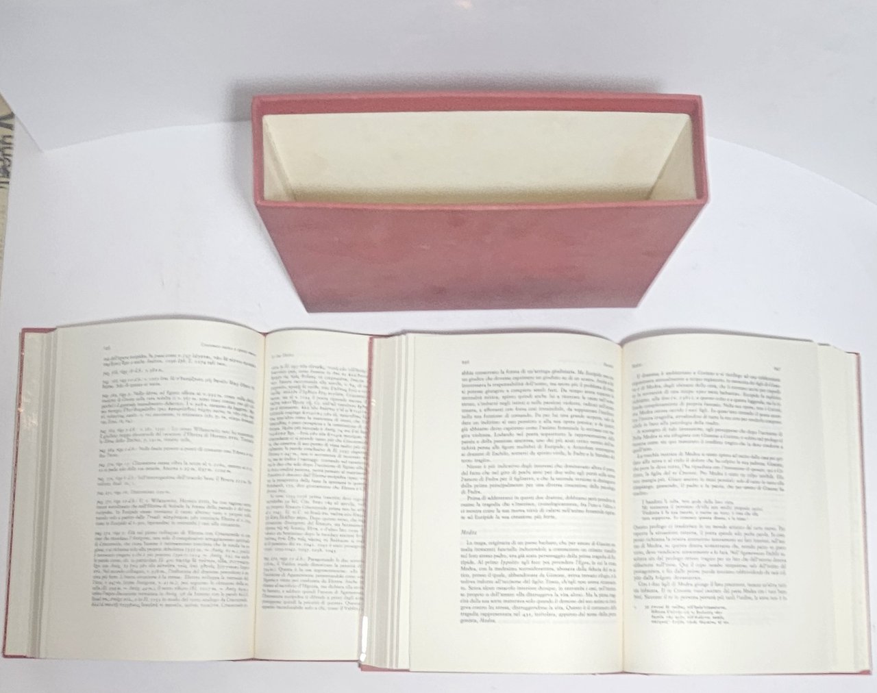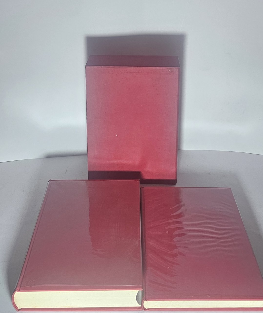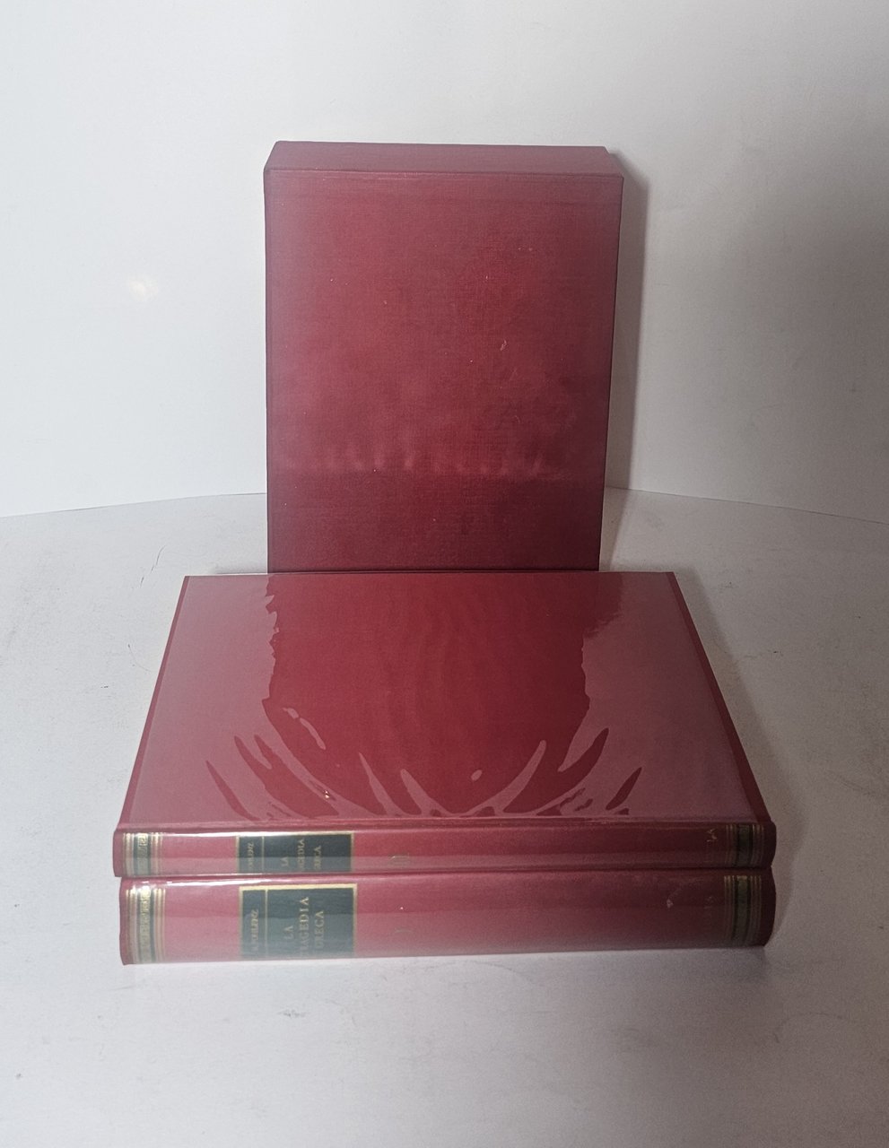 Rilegati in tutta tela rossa con titolo in tassello al dorso entro cofanetto editoriale