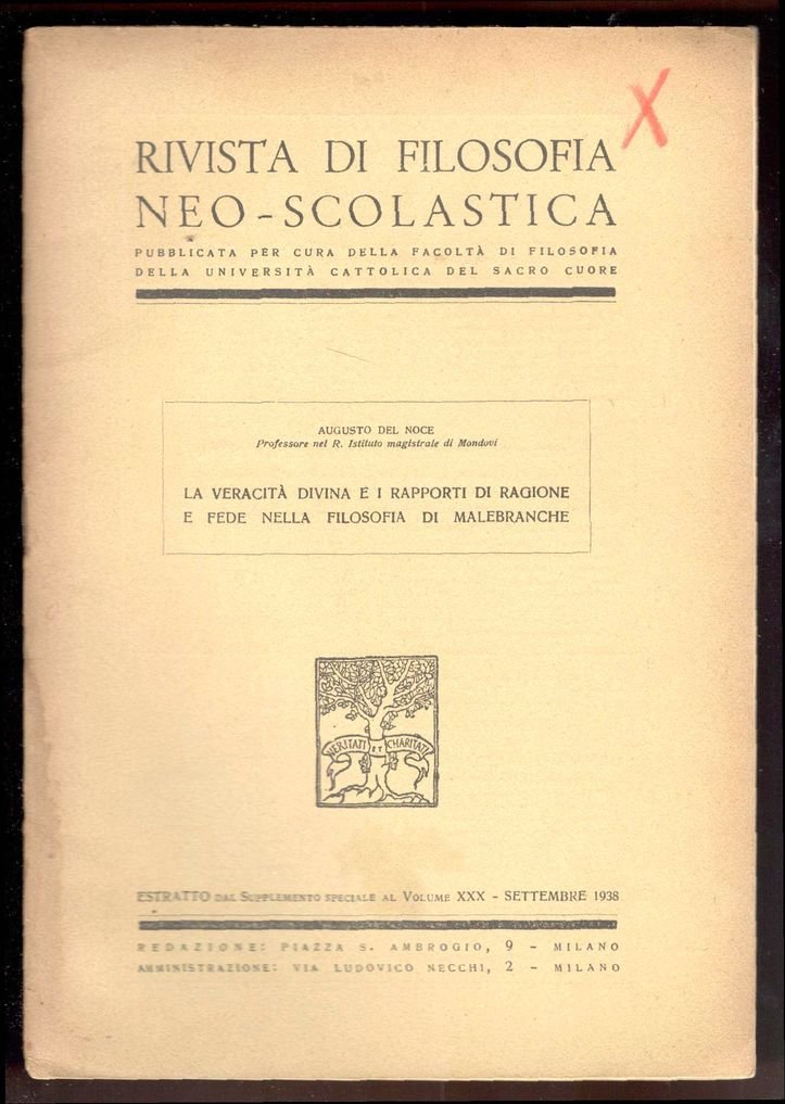 La veracità divina e i rapporti di ragione e fede nella filosofia di Malebranche | Libri antichi e moderni | Del Noce, Augusto