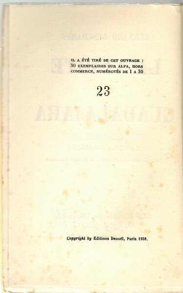 Brossura editoriale di pagine 214 con due tavole fuori testo, scritta a matita all'ultima pagina. Copia n. 23 delle 30 fuori commercio. Prefazione di Marcel Chaminade. Fioriture ad alcune carte. Opera in buone condizioni. Spedizione in 24 ore dalla conferma dell'ordine.
