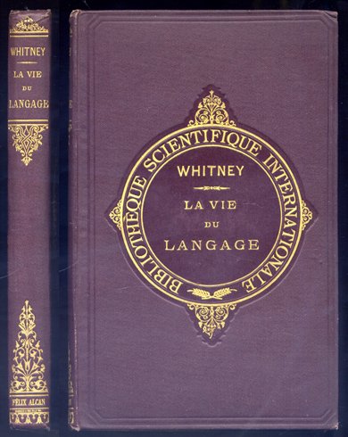 Paris, Félix Alcan Éditeur, 1892 ["Bibliothèque Scientifique Internationale"]. 4to.; VII-264 pp. Encuadernación original en tela estampada. Whitney, profesor de sánscrito y gramática comparada en Yale, anticipó en 1867, antes que Ferdinand de Saussure, el estudio sobre el carácter arbritrario del signo linguístico.