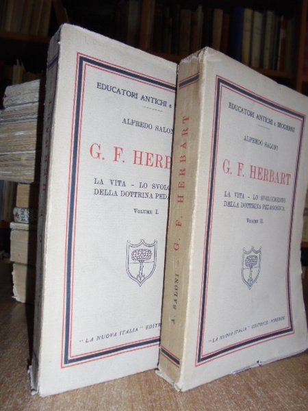 (Pedagogia). Alfredo Saloni. G.F. Herbart. La vita - Lo svolgimento della dottrina pedagogica. Firenze, La Nuva Italia, 1937. 2 volumi in-16°, br. 353, (1) pp.; 358 pp. Ben conservati e intonsi. Neg. mob. 6