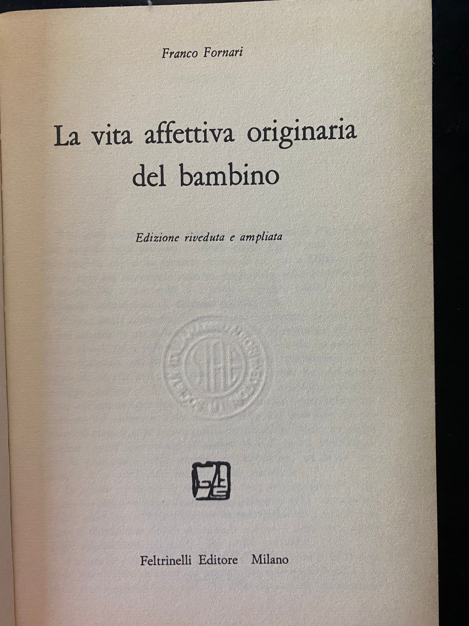 La vita affettiva originaria del bambino, Franco Fornari, Feltrinelli, 1986
