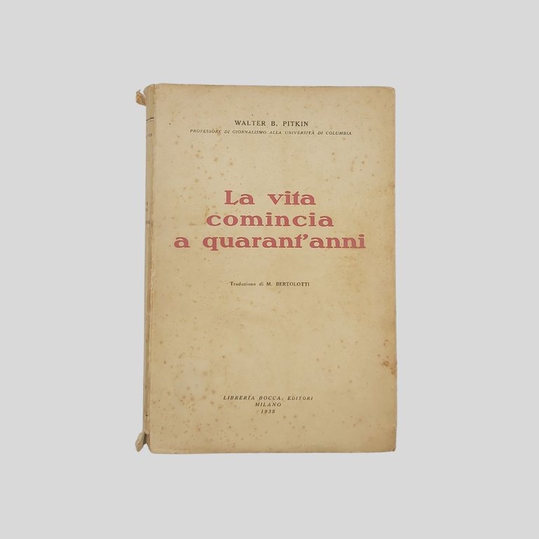 La vita comincia a quarant’anni. Traduzione di M. Bertolotti. | Libri antichi e moderni | Pitkin Walter B. –