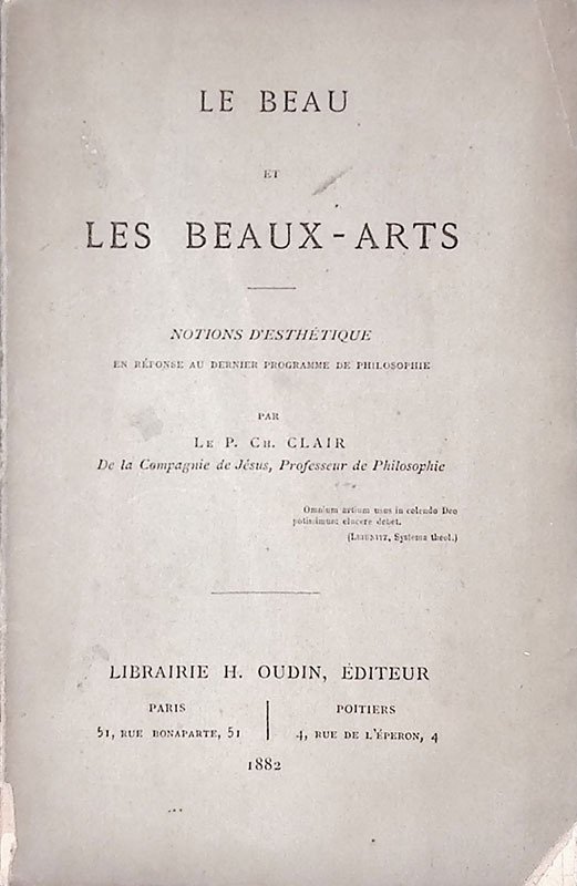 Le beau et les beaux-arts. Notions d'esthetique et reponse au dernier programme de philosophie | Libri antichi e moderni | Clair Cr.