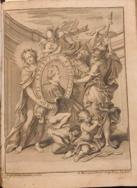Prima edizione. Cm.26,5x19,5. Pg.55, (1). Legatura in piena pergamena semirigica, lievemente allentata. Bella antiporta allegorica figurata, incisa da Girolamo Frezza da disegno dello stesso Giuseppe ghezzi. Stemma dell'Accademia impresso al frontespizio. Capilettera e ricchi cartigli calcografici. Nel volume una Orazione di Mons. Cybo e sonetti e epigrammi di Alessandro Guidi, Anton Domenico Norcia, Carlo Enrico San Martino, Filippo Fabbri, Francesco Maria Gasparri, G. Battista Zoppi, Giulio Cesare Grazini, G. Mario Crescimbeni, Giuseppe Paolucci, Ottolino Ottolini, Pietro Francesco Bussi, Vincenzo Leonio, Paolo Campelli. In fine elenco dei giudici e dei premiati. Codice libreria 164003.