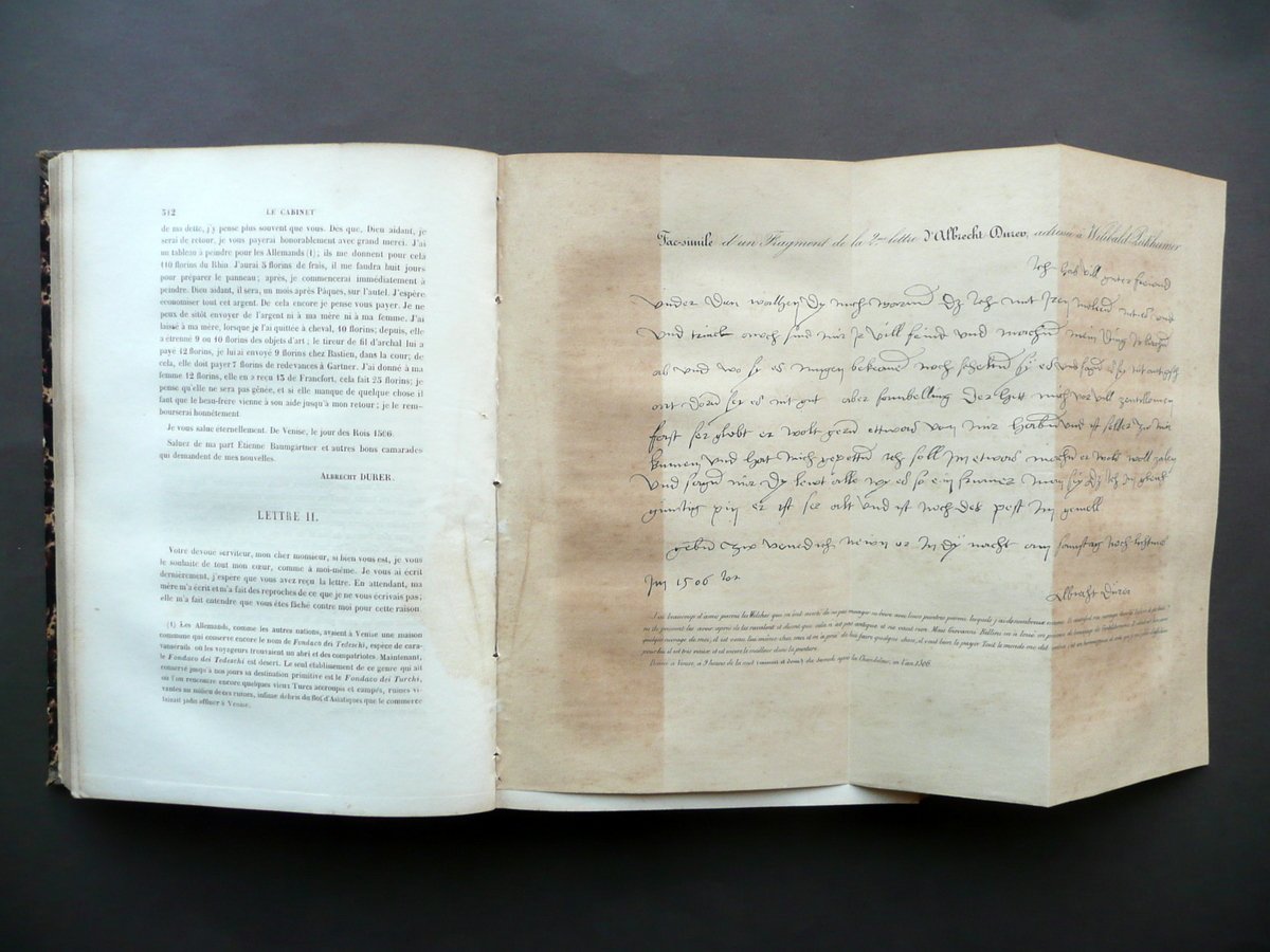 Le cabinet de L'Amateur Et de l'antiquaire Revue Des tableaux et des estampes anciennes; des objets d'art, d'antiquité et de curiosité Tome premier Au Bureau du Journal, Paris 1842, cm 23x15, pp. 576 con alcune ill. in b/n nel t. e qualche tavola in b/n fuori t. (una a colori); legatura d'epoca in mezza tela con titolo impresso in oro al dorso; piatti in carta marmorizzata. Solo volume primo. Testo in francese. Condizioni di conservazione Esemplare ben conservato con tracce d'uso; coperta con qualche minima abrasione e pochi minuscoli strappetti ai margini e agli angoli dei piatti. Interni buoni con qualche leggera brunitura; margine int. di alcune pagine con lievi aloni che non compromettono la lettura del testo. Solo volume primo. Testo in francese. SETT124.L11967 N