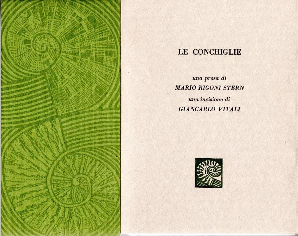 Le conchiglie, prima edizione ottobre 2002, formato 12,5 x 17.<BR>Copertina in cartoncino grigio con titoli scritti in nero. Fascetta verde illustrata. All'interno una prosa di Mario Rigoni Stern e un'incisione di Giancarlo Vitali. Edizione composta in caratteri Bodoni e tirata a torchio in 110 esemplari (esemplare n. 50).<BR>Ottime condizioni.