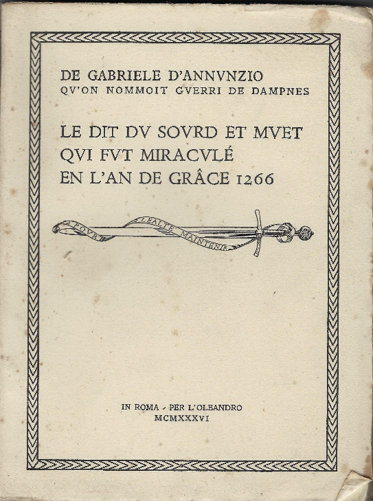 Le Dit Du Sourd Et Muet Qui Fut Miracle En L'an De Grace 1266 | Libri antichi e moderni | De Gabriele D'Annunzio