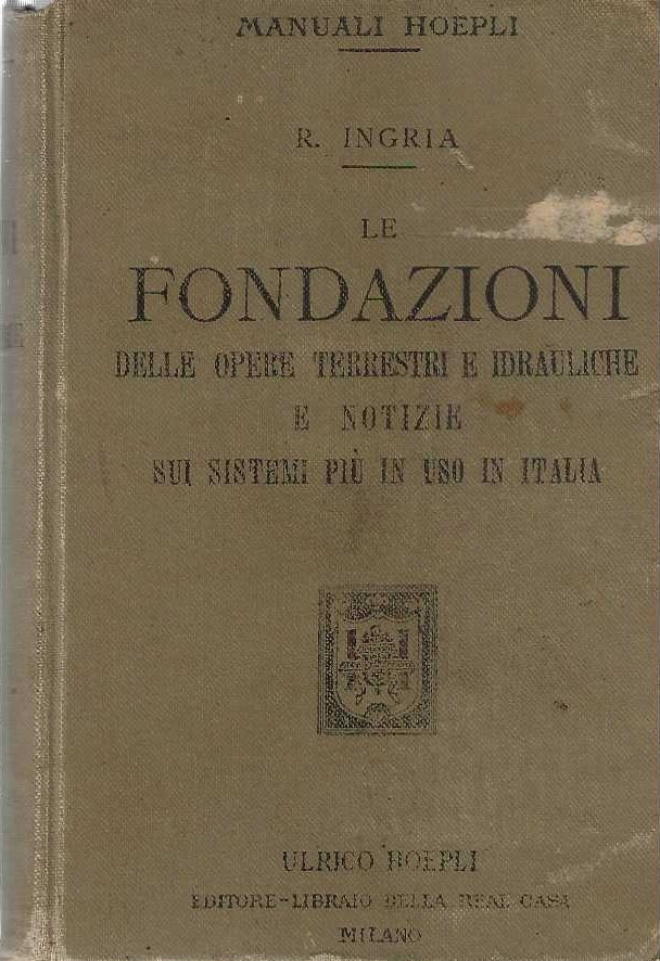 Le Fondazioni delle opere terrestri e idrauliche e notizie sui sistemi più in uso in italia | Libri antichi e moderni | R. Ingria