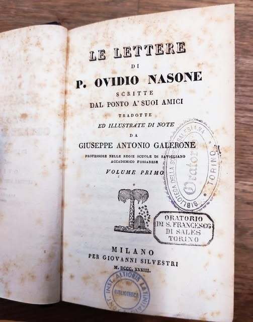 Le lettere di P. Ovidio Nasone scritte dal Ponto ai suoi amici, tradotte ed illustrate di note da Giuseppe Antonio Galerone. Due volumi rilegati insieme