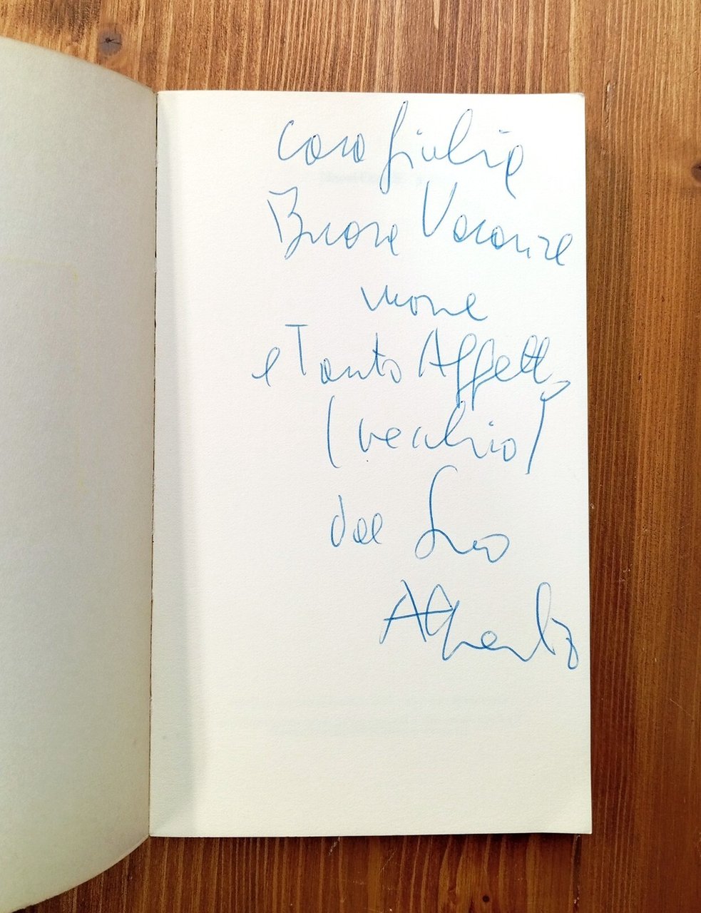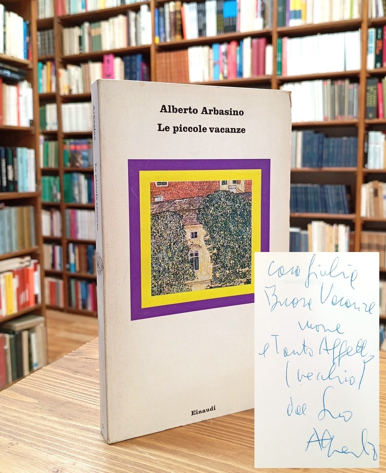 Prima edizione nella collana "Nuovi Coralli", 5. In apertura, dedica e firma a tutta pagina dell'Autore a Giulia [Massari, 1924 - 2015], giornalista vicina al milieu politico e culturale romano dagli anni sessanta in poi, da sempre molto amica di Arbasino ("Cara Giulia, buone vacanze nuove e tanto affetto (vecchio) dal suo Alberto") - Brossura editoriale di 258 pagine. I racconti "Povere mete" e "Racconto di Capodanno" sono qui ripubblicati su licenza Feltrinelli. Assai tenue brunitura della copertina, peraltro esemplare in ottimo stato con paginazione fresca e compatta.
