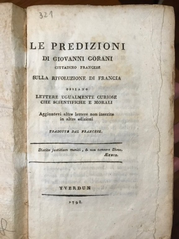 Le predizioni sulla Rivoluzione di Francia di Giovanni [sic] Gorani ossiano lettere ugualmente curiose che scientifiche e morali. | Libri antichi e moderni | Gorani Giuseppe.
