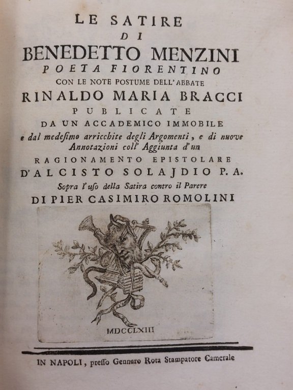 Le Satire. Con le note postume dell'Abbate Rinaldo Maria Bracci. | Libri antichi e moderni | Menzini Benedetto.