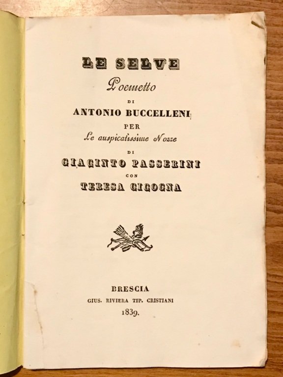 Le selve. Poemetto per le auspicatissime nozze di Giacinto Passerini con Teresa Cicogna. | Libri antichi e moderni | Buccelleni Antonio.