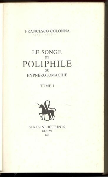 Le songe de Poliphile ou Hypnérotomachie. (Due volumi) | Libri antichi e moderni | Colonna, Francesco