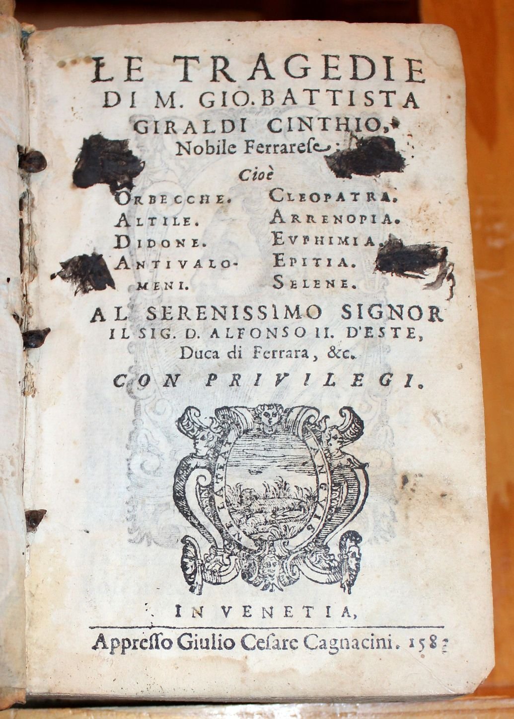 Le Tragedie di M. Gio. Battista Giraldi Cinthio, Nobile Ferrarese. Cioè Orbecche. Altile. Didone. Antivalomeni. Cleopatra. Arrenopia. Euphimia. Epitia. Selene. Al serenissimo signor il Sig. D. Alfonso II d'Este