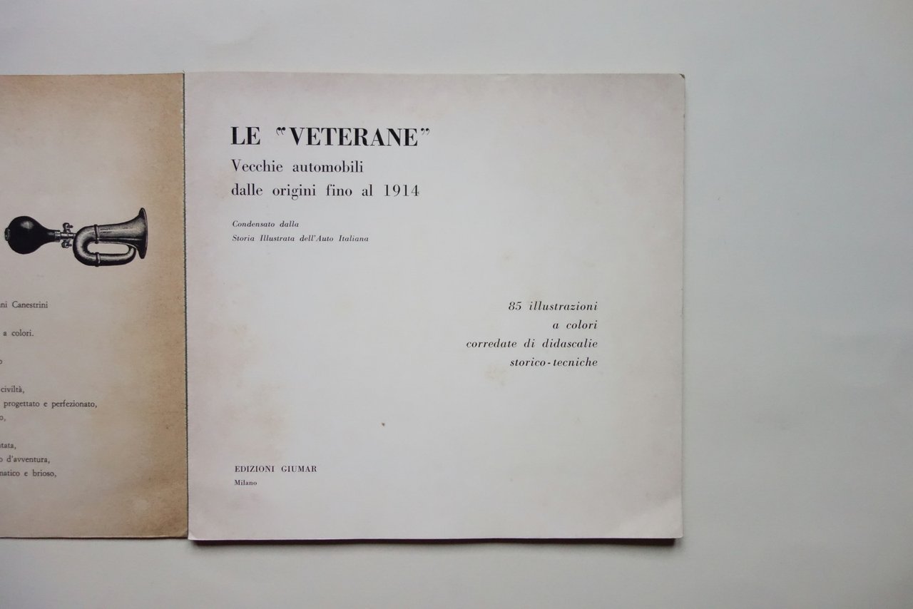 Le Veterane" vecchie automobili dalle origini fino al 1914 85 illustrazioni a colori corredate di didascalie storico - tecniche Ed. Giumar, Milano 1961; cm 22,5x24; pp. 80 con ill.; brossura ed. ill. a colori (dorso telato). Condizioni di conservazione Buone condizioni con tracce d'uso, brossura leggermente ingiallita con con tracce di pieghette agli angoli della copertina. Interni buoni con poche minuscole bruniture alle prime e ultime pagine. "Supplemento e condensato della 'Storia Illustrata dell'Auto Italiana'". OPEB.5614 N "