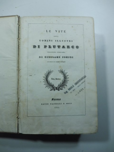 Le vite degli uomini illustri di Plutarco. Versione italiana di Girolamo Pompei | Libri antichi e moderni | Plutarco