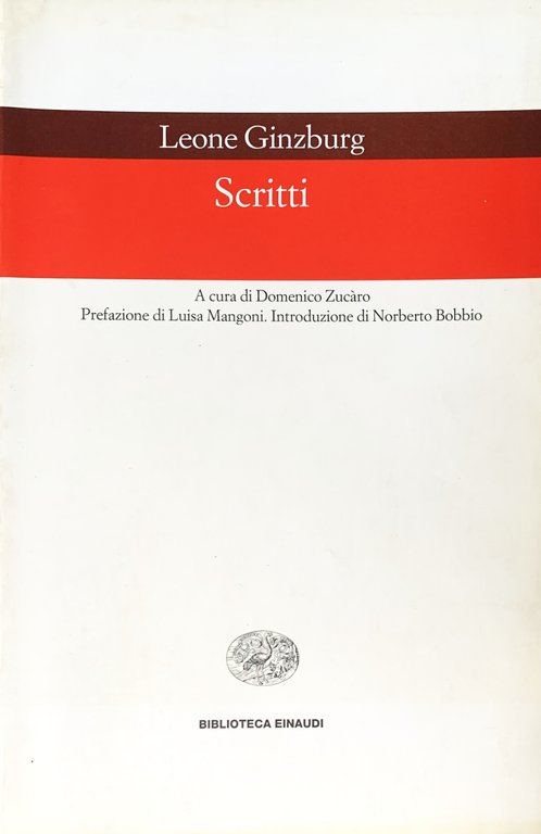 II ed. della raccolta: ottobre 2000 (I ed. della raccolta: Torino, Einaudi 1964). Biblioteca Einaudi 99. VIII/ LXXVI+490/ brossura in cartoncino satinato bianco con grafica in nero/rosso/marrone. Stato buono (leggere bruniture in copertina). Indice: Prefazione; Luisa Mangoni - Introduzione; Norberto Bobbio - Cronologia - Scritti politici e storici (Scritti politici - Scritti storici) - Scritti letterari (Scrittori russi (lo studio delle byline - Griboedov - Puskin - Gogol - Goncarov - Turgenev - Dostoevskij - Tolstoj - Leskov - Garsin - Cechov - Gor'kij - Bunin - Fedin - Babel' - Rozanov - Altri scritti) - Letteratura francese (Maupassant - Duhamel) - Letteratura italiana (I frammenti autografi dell' "Orlando furioso" -( Nota ai "Canti" di Giacomo Leopardi)) - Scritti vari (Le due interpretazioni - Utilità delle distinzioni - Croce e Valéry) - Inediti (Una sfida inedita di Ugo Foscolo aal tipografo Nicolò Bettoni - (Sulla "toscanità" dell'Ariosto) - (Sull'attività dell'Istituto Warburg))) - Indice dei nomi.