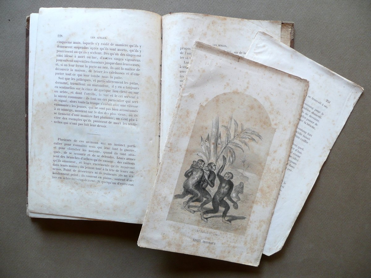 J. Caboche Demerville, Les Animaux Célèbres, intelligents et curieux par J. Caboche Demerville Librairie Pittoresque de la Jeunesse / Dauvin et Fontaine, Paris, s. d. (fine '800 circa), cm 24x16, pp. 236 con numerose ill. in b/n nel t. e varie tavv. in b/n fuori t.; legatura d'epoca in mezza pelle con piatti in carta marmorizzata (mancanza della maggior parte del rivestimento al dorso; vedi foto). Testo in francese. Condizioni di conservazione Esemplare in modeste condizioni con tracce d'uso e del tempo; dorso con mancanza della maggior parte del rivestimento in pelle e fessurazione alla cerniera post.; esemplare complessivamente compatto (vedi foto); margini e angoli dei piatti con qualche minima abrasione e piccole mancanze. Interni con alcune bruniture; uno o più angoli di qualche pagina con una piccola mancanza o traccia di pieghetta; poche pagine con uno strappetto anche di alcuni cm; pp. 229-232 staccate dal corpo del testo; cucitura di qualche fascicolo lievemente allentata. Con numerose illustrazioni in bianco e nero nel testo, e varie tavole litografiche in bianco e nero fuori testo. Testo in francese. Condizioni come da foto e da descrizione. SETT106.L10310 N