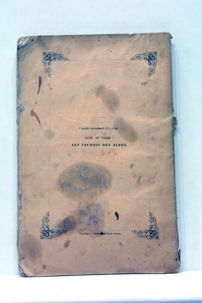 XIII + 2 pages non chiffrées + 197 pages + 2 pages non chiffrées (15x24cm). Couverture imprimée usagée. Salissures aux plats. Manques de papier au dos. Exemplaire non rogné. Feuillets écornés. Quelques salissures. Rousseurs éparses. Rare. Italie. Les Vaudois. Piémont. Protestantisme.