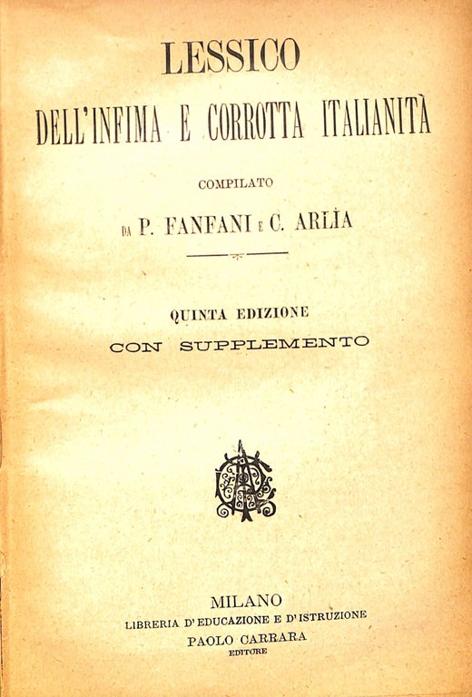 Lessico dell'infima e corrotta italianità | Libri antichi e moderni | Fanfani, Pietro - Arlia, Costantino