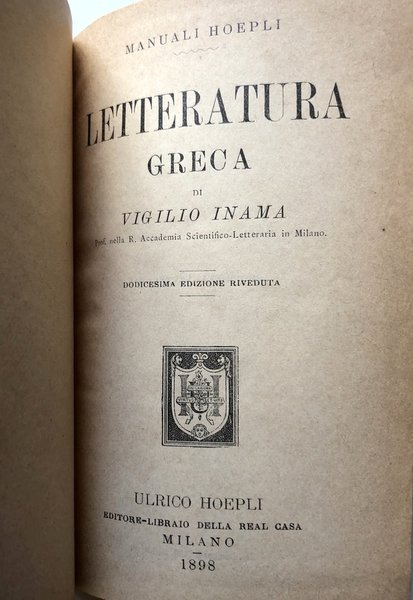 LETTERATURA GRECA | Libri antichi e moderni | Vigilio Inama