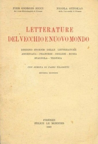 Letterature del vecchio e nuovo mondo. Disegno storico delle letterature americana, francese, inglese, russa, spagnola, tedesca. | Libri antichi e moderni | Ottokar,Nicola. Ricci,Pier Giorgio.