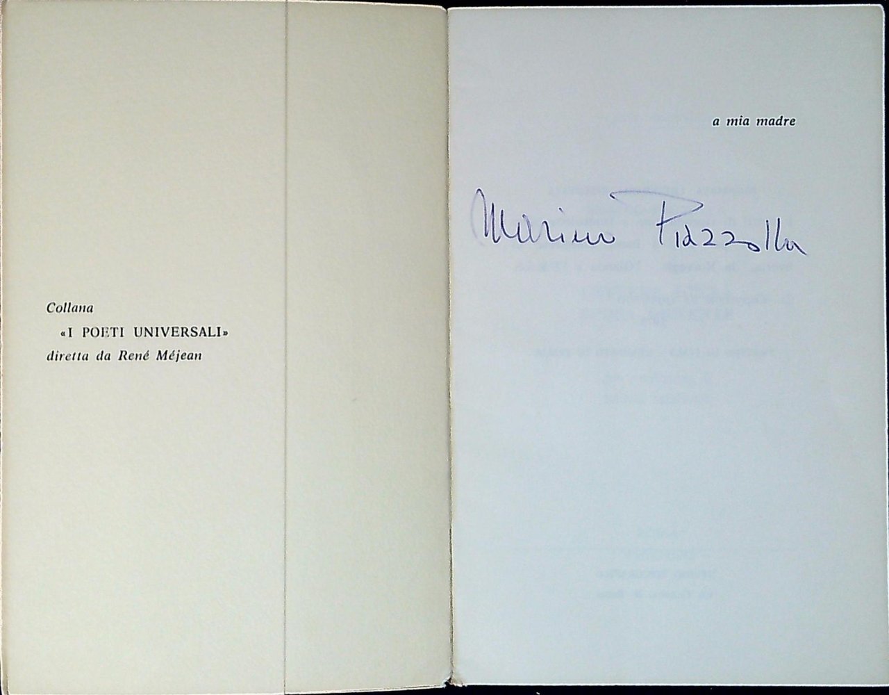Marino Piazzolla Lettere alla sposa demente. Roma, Ippogrifo 1975, 16 83 p. Autograffo dell'autore alla prima bianca (56071)