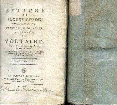 Lettere di alcuni Giudei portoghesi, tedeschi, e polacchi, al Signor di Voltaire. Con un breve Comentario, estratto da uno più lungo. Tradotto per la prima volta in Italiano, dall'ultima edizione Francese; con alcune note, ed una Prefazione del Traduttore