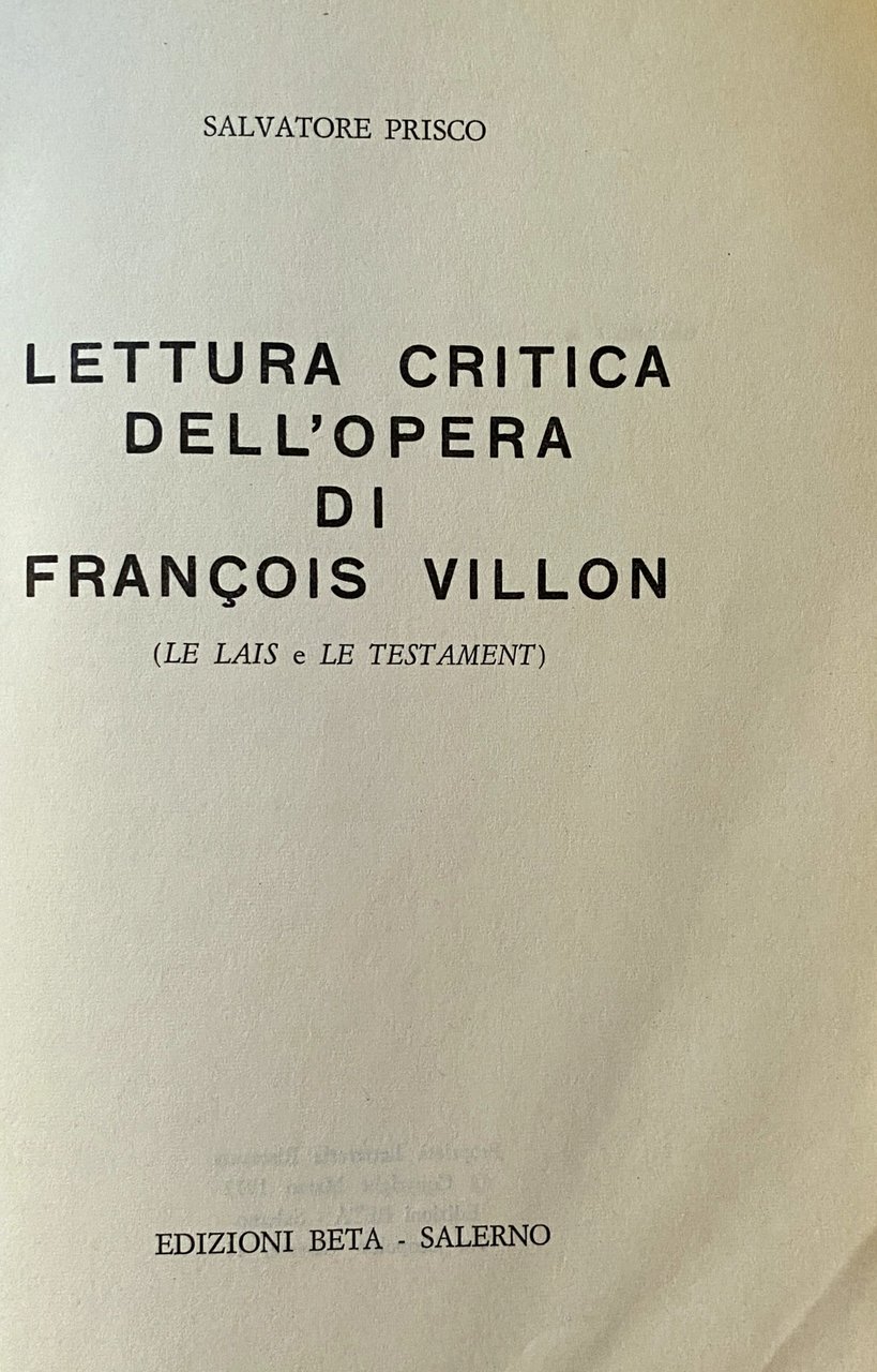 LETTURA CRITICA DELL'OPERA DI FRANÇOIS VILLON (LE LAIS E LE TESTAMENT) | Libri antichi e moderni | Salvatore Prisco
