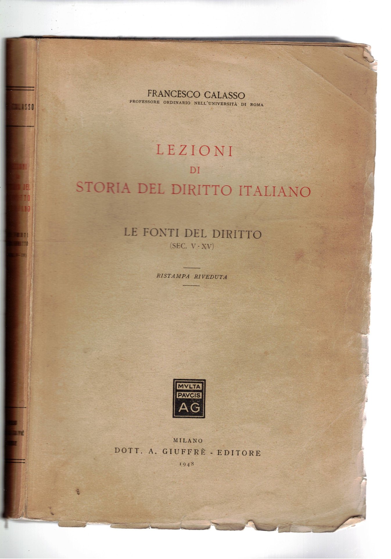 Lezioni di storia del diritto italiano; le fonti del diritto (sec. V-XV). Ristampa riveduta. | Libri antichi e moderni | Calasso Francesco.