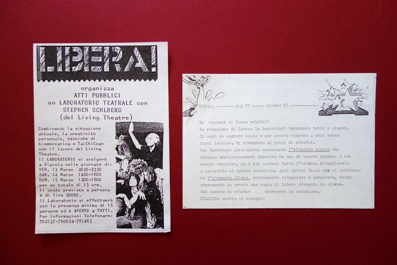 Libera! Spazio Mensile Sognatori Folli 6 Numeri 1991-92 Volantino Living Theatre