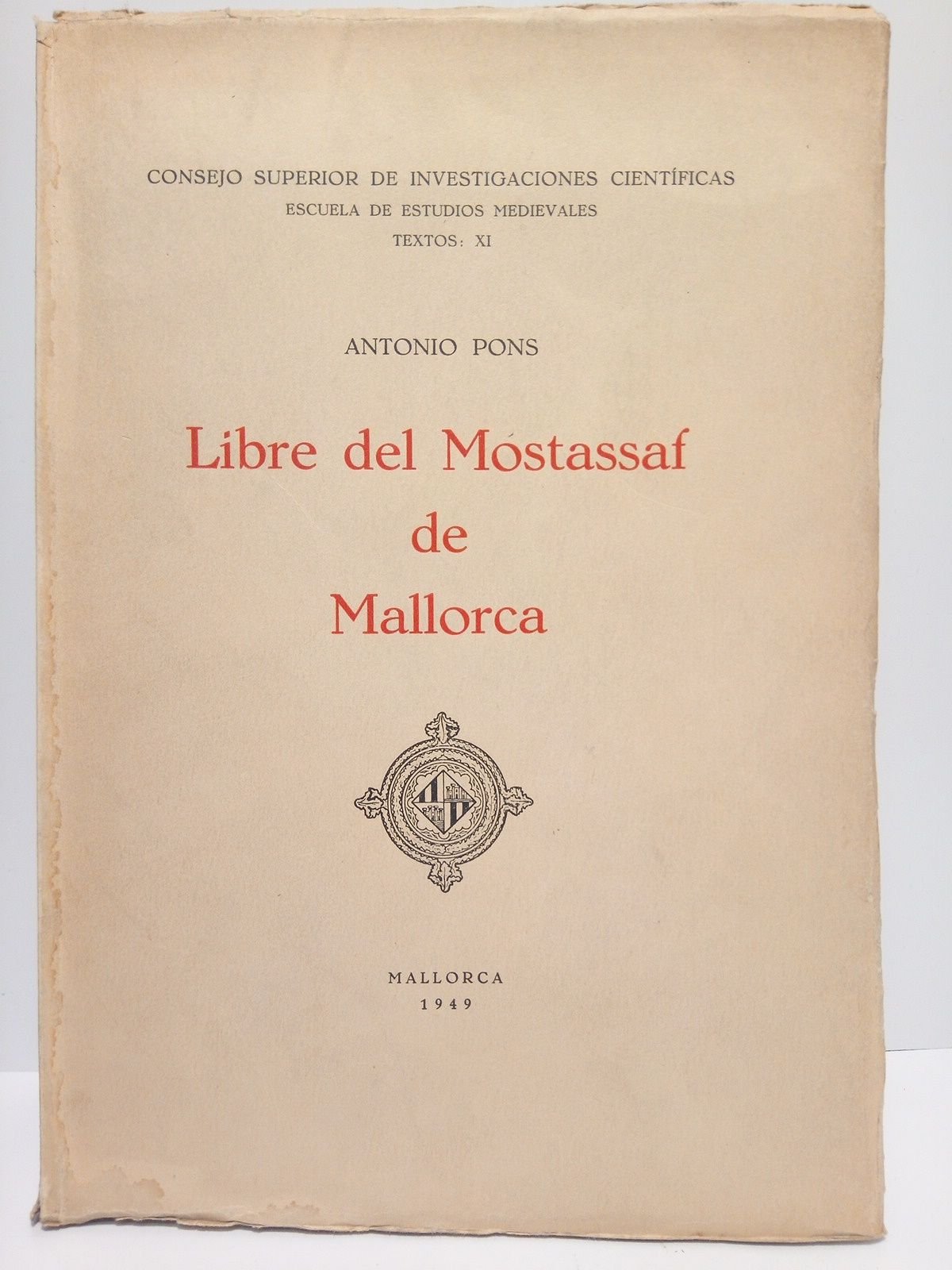 Mallorca: CSIC., 1949.- LIX,385 p.: Facsimil del folio I. del códice; 4º mayor (25,2 x 17,9 cm); Intonso y sin desbarbar; Cartulina Ed.- (CSIC. Escuela de Estudios Medievales. Textos 11. Seción de Valencia, 2).- Completo estudio y transcripción en su lengua original catalana-balear, de este códice medieval que contiene las primeras "Ordinaciones Municipales" que en Mallorca regularon la vida ciudadana.* La cubierta anterior tiene un fino ribete de humedad junto al lomo, que toca un poco también a la esquina inferior. Por lo demás en excelente estado. HISTORIA MEDIEVAL ESPAÑOLA