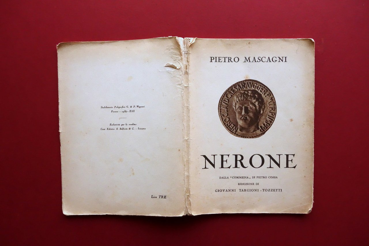 Libretto d'opera, Nerone" dalla commedia di Pietro Cossa tre atti (quattro quadri) di Giovanni Targioni - Tozzetti musica di Pietro Mascagni Stab. Musicale G. & P. Mignani, Firenze 1934; cm 21x15; pp. 76; brossura ed. ill. in b/n. Condizioni di conservazione Condizioni complessivamente buone con tracce d'uso, angoli lievemente sgualciti con minimi accenni di pieghette, brossura con poche minime leggerissime bruniture; cuffia superiore con una piccola mancanza e qualche adiacente leggera abrasione (vedi foto). Interni buoni con lieve ingiallimento delle pagine dovuto al tipo di carta. A poche pagine qualche piccolo segnetto a matita. Libretto della prima rappresentazione alla Scala di Milano, con indicati i nomi degli interpreti (vedi foto). SETT158.L25096 N P "