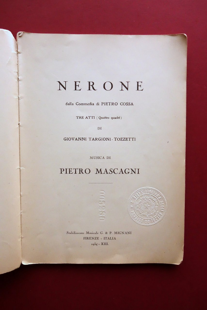 Libretto d'Opera Nerone Pietro Mascagni 1∞ Rappresentazione Scala Milano 1934 | Libri antichi e moderni |