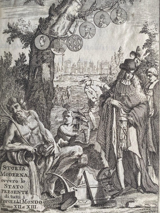 <span style="font-style: normal;">In-8° (cm. 18,6), legatura coeva in piena pergamena con titolo in oro su tassello (lievemente abraso), tagli spruzzati in blu; pp. [16] 462 [2] in ottimo stato (leggera gora alle sole prime carte); con 1 tavola incisa in rame all'antiporta nel testo e 28 (di 29) tavole illustrative sempre in rame ripiegate fuori testo, di cui 2 grandi carte geografiche. Mancante della sola tavola </span>sul Collegio di S. Pietro in Cantabrigia. <span style="font-style: normal;">Volume sulla Gran Bretagna dedicato al vescovo di Torcello Vincenzo Diedo; appartenente alla monumentale impresa editoriale dell'Albrizzi, che progettò in lingua italiana la pubblicazione della </span><i>Modern History or the Present State of all Nations</i> del geografo inglese. Esemplare molto buono. (SB1)