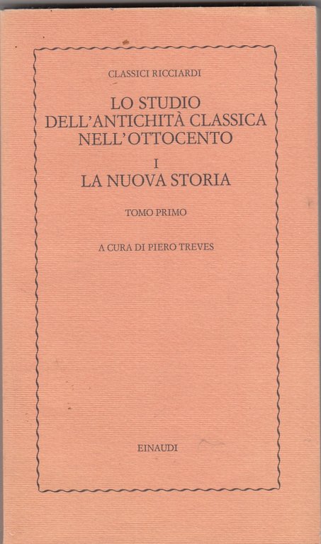 Lo studio dell'antichità classica nell'ottocento. La nuova storia Tomo primo | Libri antichi e moderni | a cura di Piero Treves, ,a cura di Piero Treves