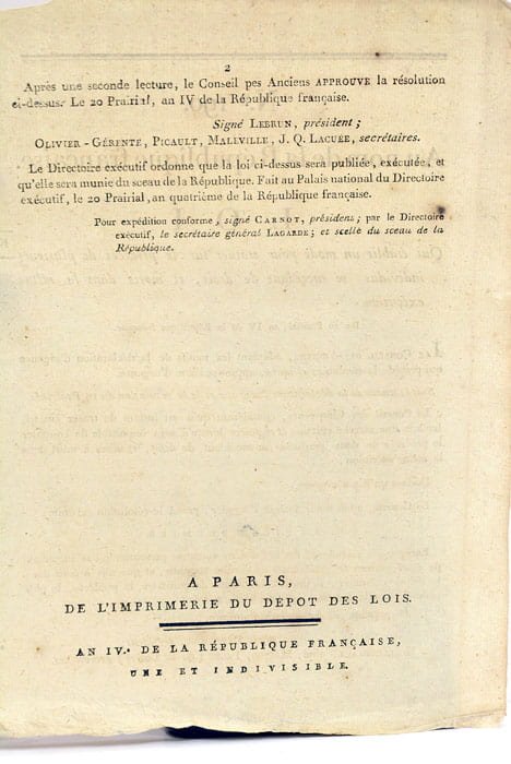 • Paris, Imprimerie du dépot des lois, 1796.
