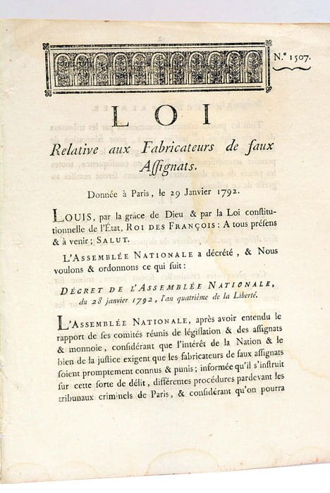 Loi rélative aux fabricants de faux Assignats. | Libri antichi e moderni | Duport.