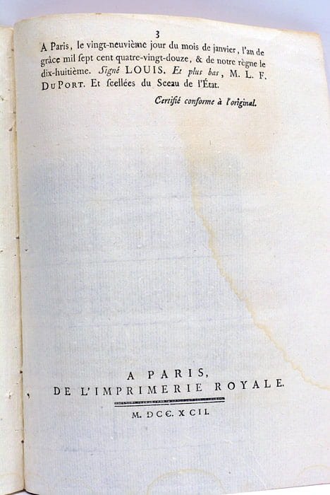 • Paris, l'Imprimerie Royale, 1792.