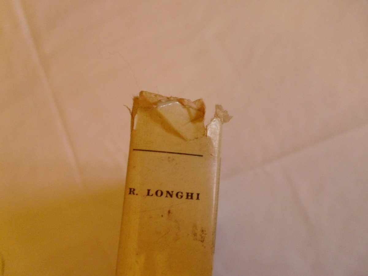 R. Longhi, Correggio La camera di San Paolo a Parma Società Emiliana Di Esercizi Elettrici Di Parma, 1956; cm 39,5x30; pp. 47 + 63 tavole a col. e 2 tav. in b. n. f. t.; cartonato tutta tela edit. con titoli in oro anche al dorso con sovraccoperta fig. a col.; cofanetto di cartoncino muto. Condizioni di conservazione Esemplare in buone condizioni di conservazione. Una macchia all'angolo inf. destro della coperta e qualche minimo strappetto alle cuffie del dorso della sovraccoperta. Evidenti tracce d'uso del cofanetto muto. Vedi foto. SETT206.L17725G