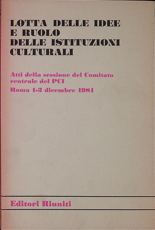 Lotta delle idee e ruolo delle istituzioni culturali : atti della sessione del Comitato centrale del PCI, Roma, 1-3 dicembre 198 | Libri antichi e moderni | Partito comunista italiano, ,Partito comunista italiano
